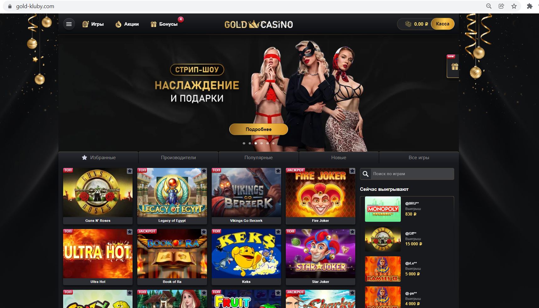 В левом верхнем углу сайта вы найдете раздел «Игры», где вы можете выбрать любой видеослот или игровой автомат из виртуального каталога, содержащего более 300 визуально привлекательных и интересных игр. Как и следовало ожидать от ведущего игрового портала 2022 года, Gold Casino предлагает широкий выбор новых 3D-слотов.